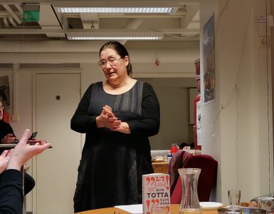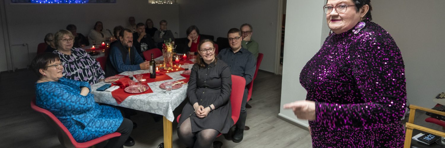 Mistä oli kyse? PJY:n pikkujoulusta yhdistyksen toimistossa. Anitta Ahonen, Iso A, nauratti stand upillaan.