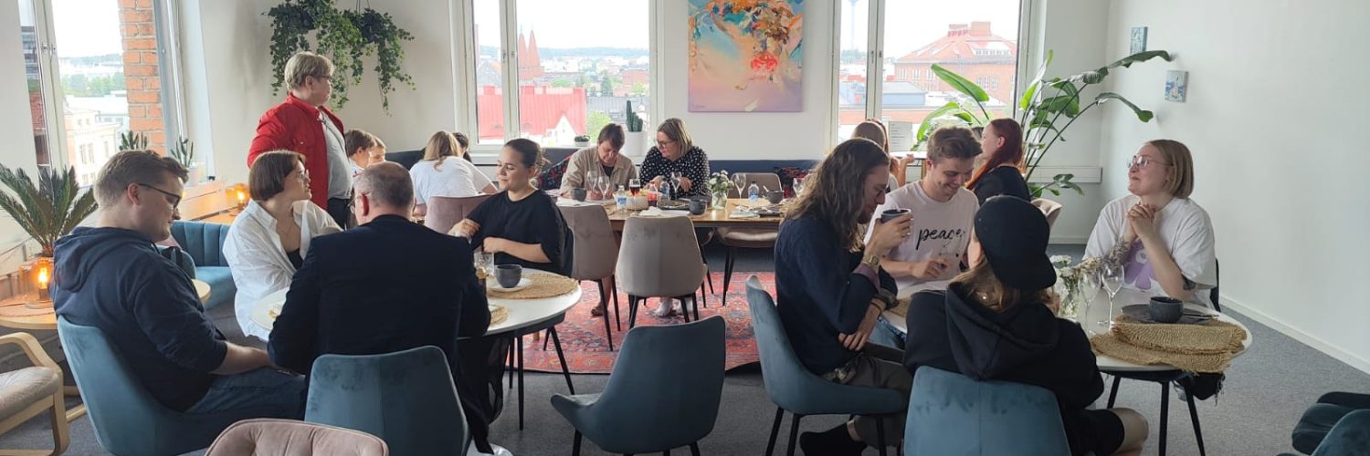 Oliko tarjoilua? Juotiin yhdessä alkumaljat, ja luottamushenkilö tarjoili savutofuskagenia & piirakkaa. Tarjolla myös salaattia, naposteltavaa ja holittomia juomia.